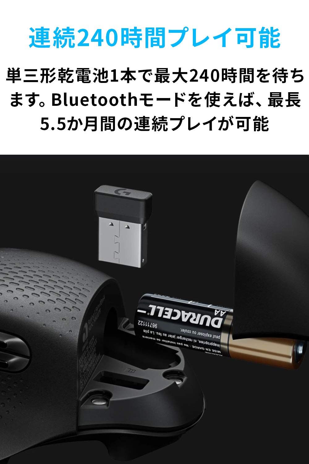LIGHTSPEEDの高度なワイヤレステクノロジーとBluetoothの2種類の接続方式を備え、簡単に切り替えることがでるエルゴノミクスデザインのG604はゲーマーにとってはどんなゲームにも強力な武器となります。【15個プログラムボタン】ゲーマーの大きな武器となる、15個の周到に配置されたコントロールとデュアルモードの高速スクロールホイール、有利にゲームをプレイできます。【長時間プレイ対応】業界をリードする独自開発のHEROセンサーによる単3電池一本だけで、LIGHTSPEED無線接続で最大240時間連続プレイが可能です。Bluetoothで接続した場合は標準仕様で最大5.5か月間持ちます。(Bluetooth