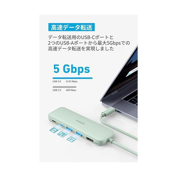 まとめ アンカージャパン ANKER 332 USB-Cハブ 5-in-1 PD 100 W対応 グリーン ×