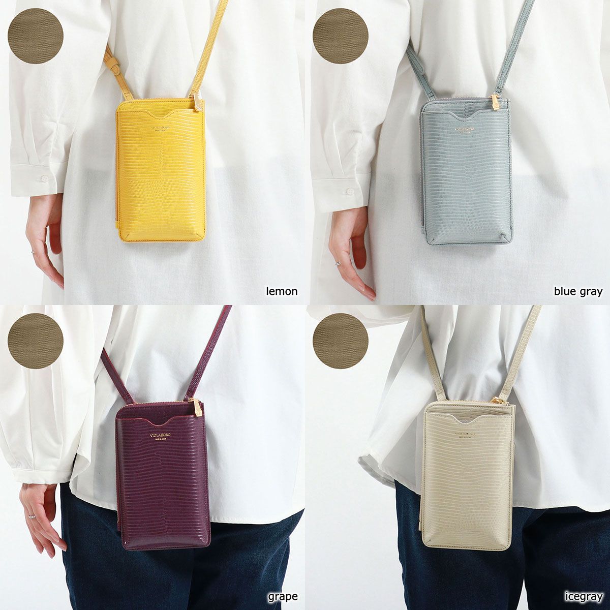 リザードの型押しがスタイリッシュな印象を演出するポシェット。スマートフォンケースと財布が一体になったつくりで、普段のちょっとした外出からトラベルシーンまで幅広く活躍します。必需品を身軽に持ち運べる使い勝手の良さで、外出時に手放せないアイテムになりそうです。