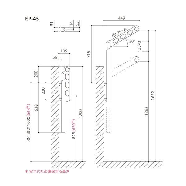 ホスクリーン 川口技研 物干し金物シリーズ EP型 EP 45 SB 2本入り 設置