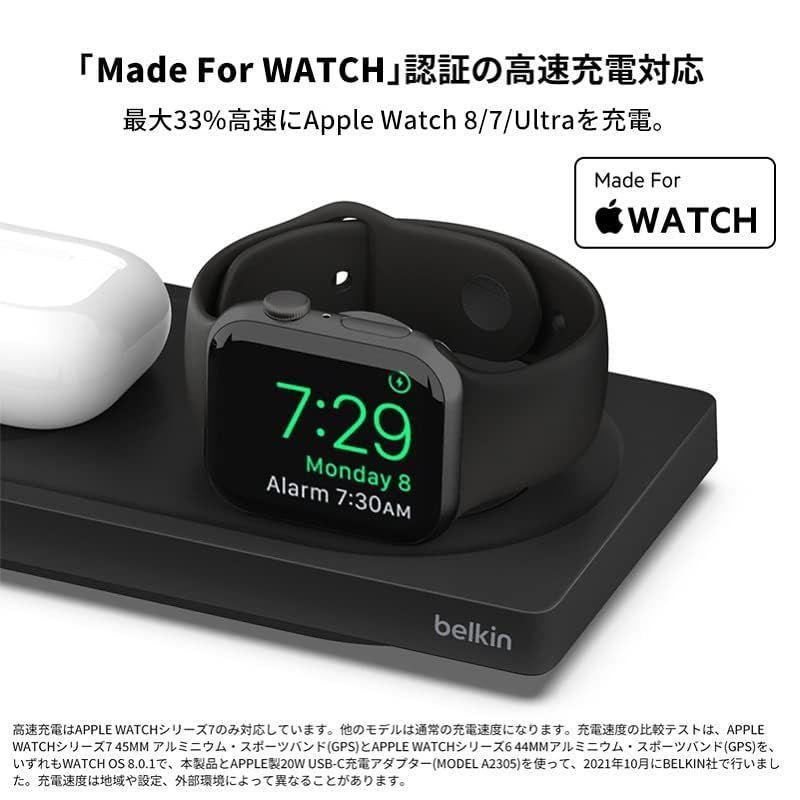 商品名:Belkin[Apple公認] 3 in 1 MagSafe充電器 最大15W高速充電 ワイヤレス充電器 MagSafe公式認証 iPhone 16 / 15 / 14 / 13 / 12 Apple Watch 8/7/Ultra 高速充電対応 AirPod
