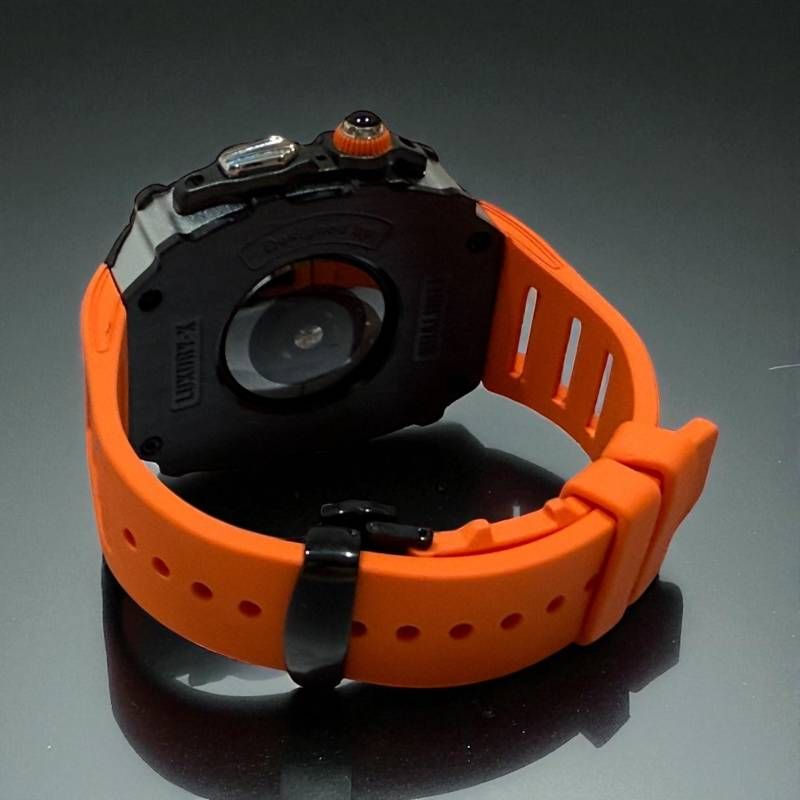 アップルウォッチケース フォージドステンレス ラバー 互換性対応 カスタム カバー 保護 ギフト 46mm ベルト バンド セット series 10 11 メンズ レディース 贈り物 オレンジブラック