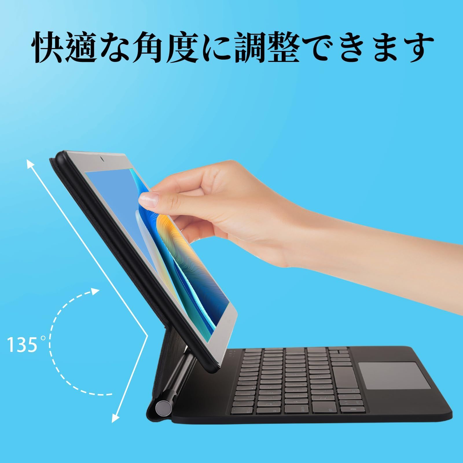「マジックキーボード」MBODMI iPadキーボードは技術基準適合証明認証済み、商品の安全性をできます。快適にタイピングできるキーボード、iPadOSでの作業方法を広げるトラックパッド、充電ができるUSB-Cポートを搭載。磁気設計で、クイックセットができ、畳むとスクリーンは自動的にスリープ状態になります。使わない時に電力の無駄消耗を防止でき、デバイスの前面と背面を守る頑丈なカバーにもなります。