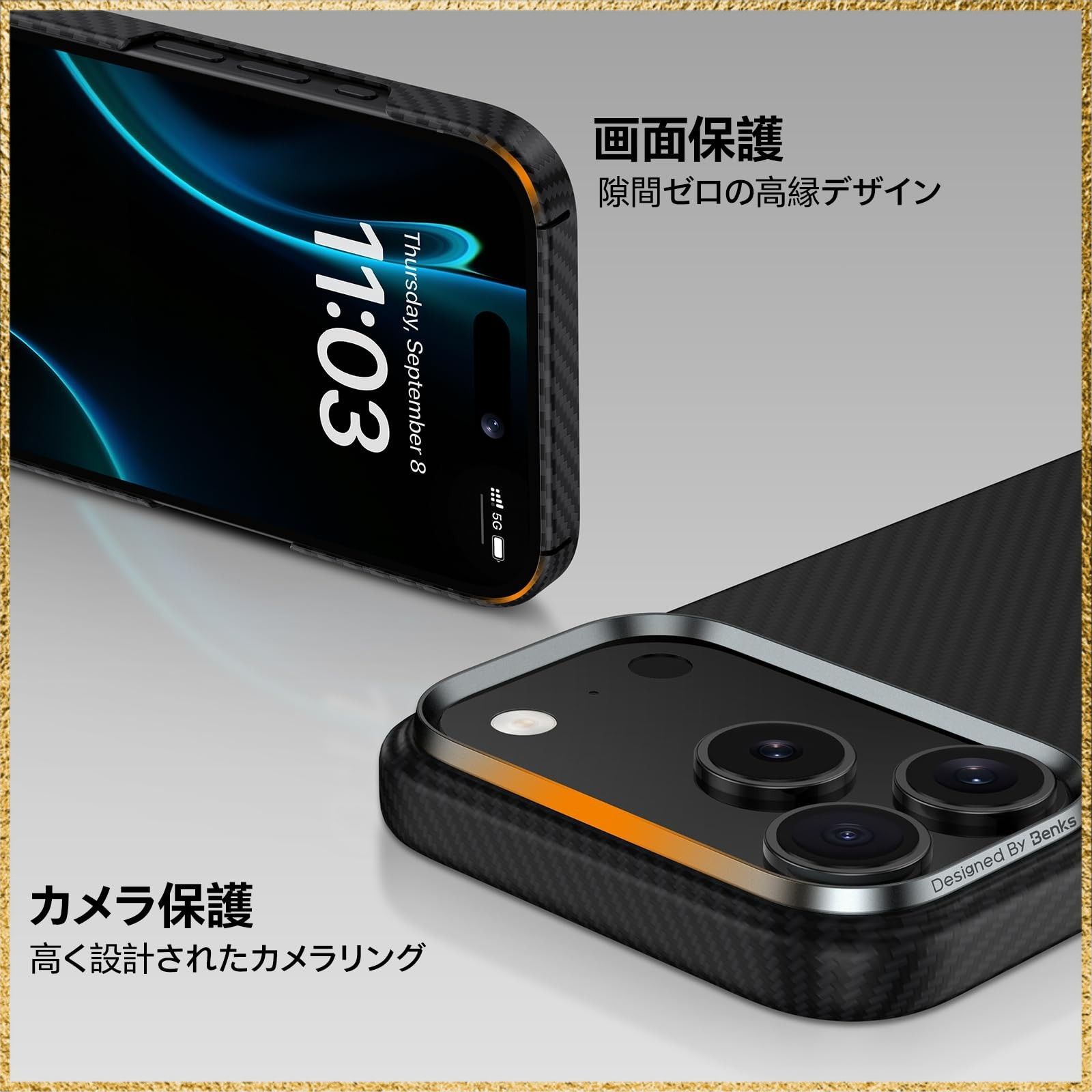 ☆彡送料無料でお届け☆彡Size:iPhone 17 Pro Max_Color:ArmorAir 600D BENKS ArmorAir iPhone 17 Pro Max用のケース 極薄軽量 MagSafe対応 超薄型 超軽量デザイン 高耐久 指紋防止 カメラ保護 Classicシリーズ ワイヤレス充電対応 デュポン製ケブラーアラミドファイバー製 いphone17 Pro Maxケース対応 スマホケース (600D/黒)