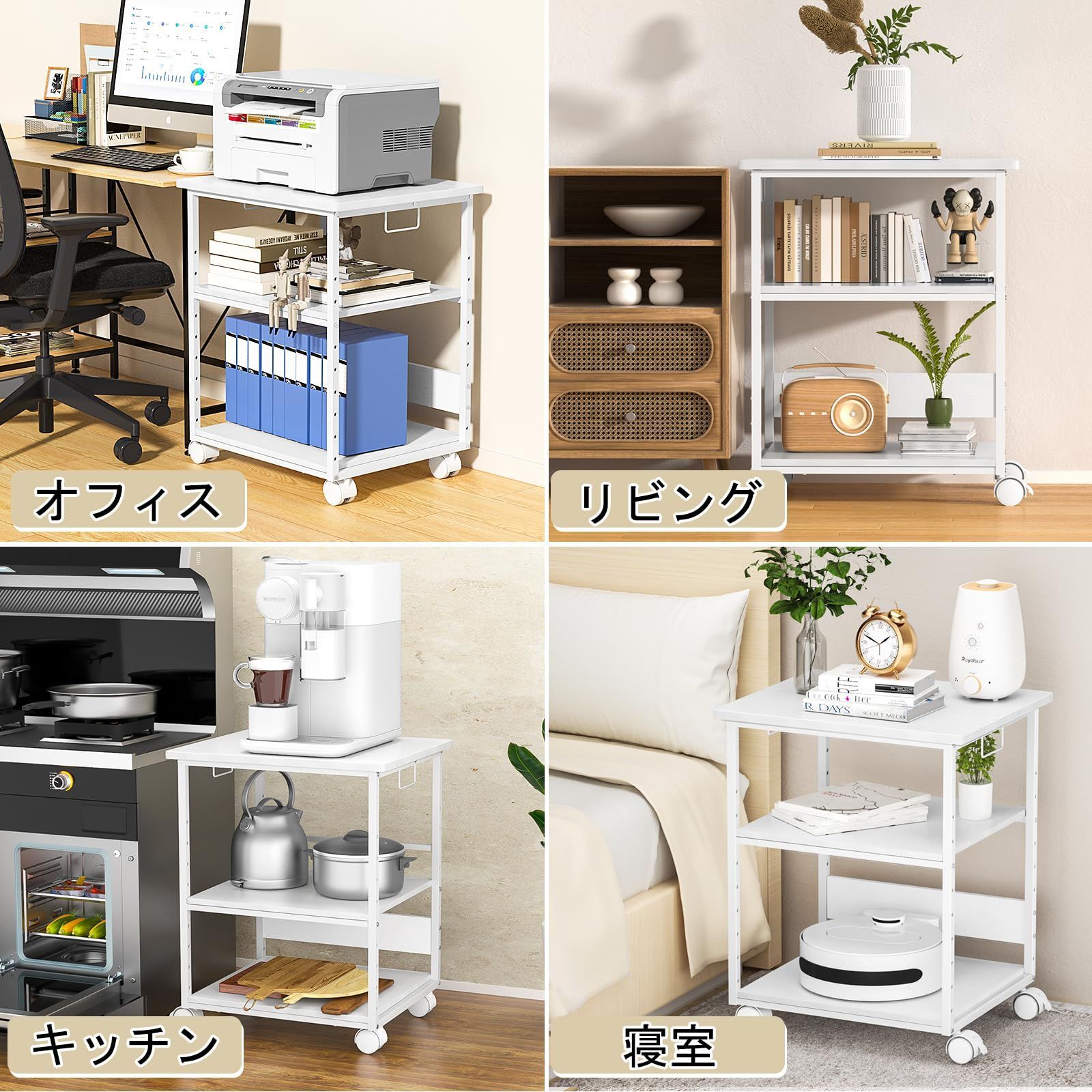 数量 MIYOKI プリンター台 プリンタラック キャスター付き 幅60 奥行50 cm 高さ70 総耐荷重90 kg A 3 4対応 コピー機台 サイド デスク ワゴン デスク下 収納棚 収納 物置台 中棚9段階調節 組立簡単 ホワイト