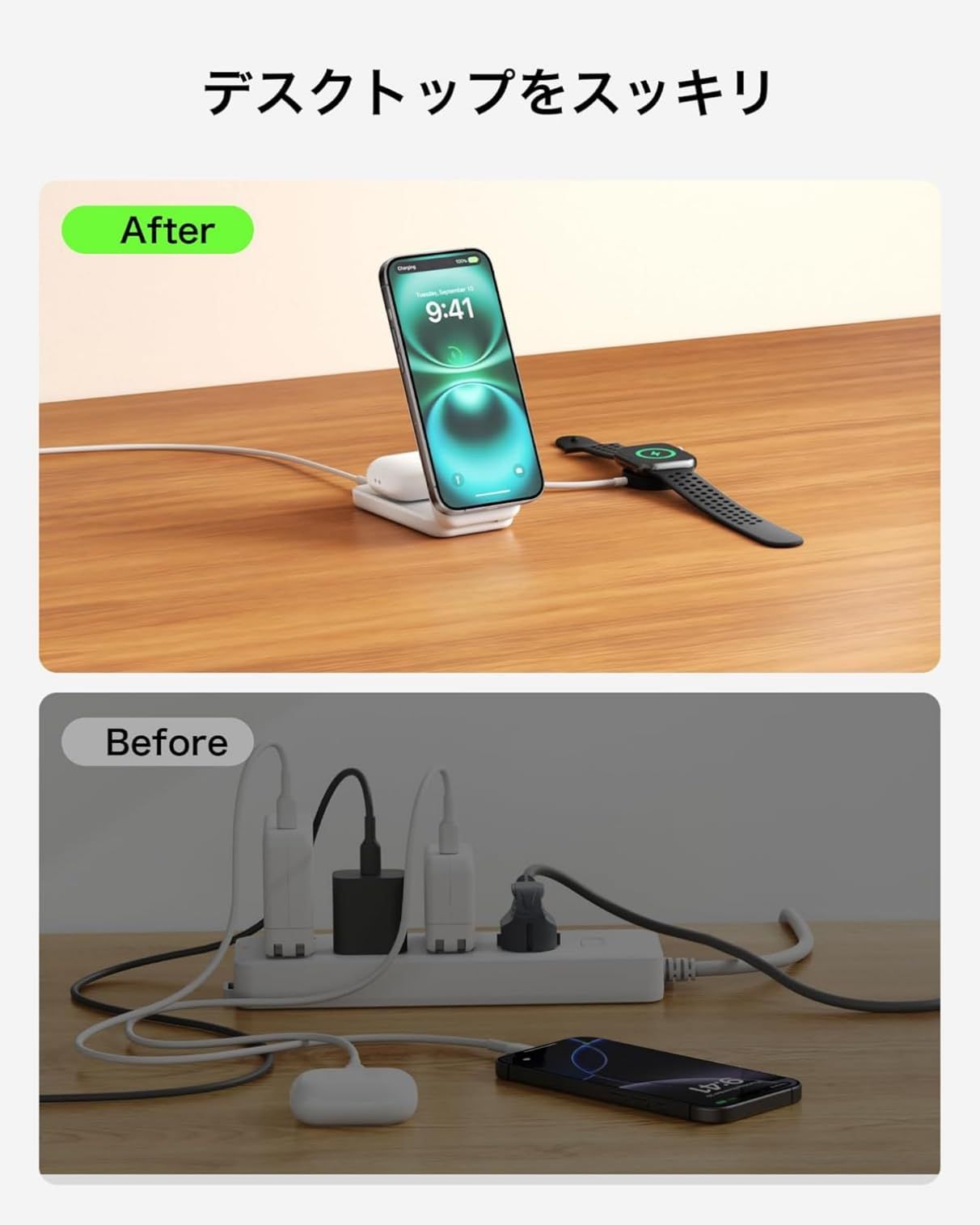 【2-in-1充電】iPhone、Airpodsを同時充電できるので、ケーブルが散らかる心配はありません。