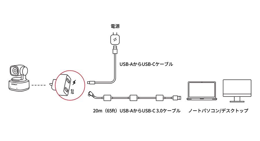 OBSBOT 20 m 65 ft USB-A から USB-C 3.0 ケーブル オブスボット OBSBOT- Remo Tech リモテック 不可