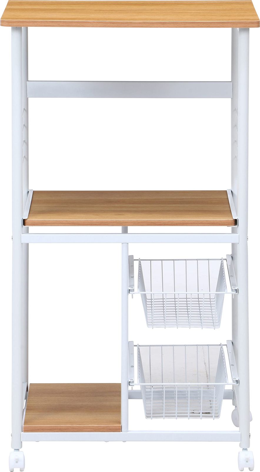 不二貿易 キッチンワゴン キャスター付き キッチンラック レンジ台 一人暮らし スライド棚 引き出し収納 バスケット付き 幅60×奥行46×高さ103.5cm ホワイト ナチュラル 15422
