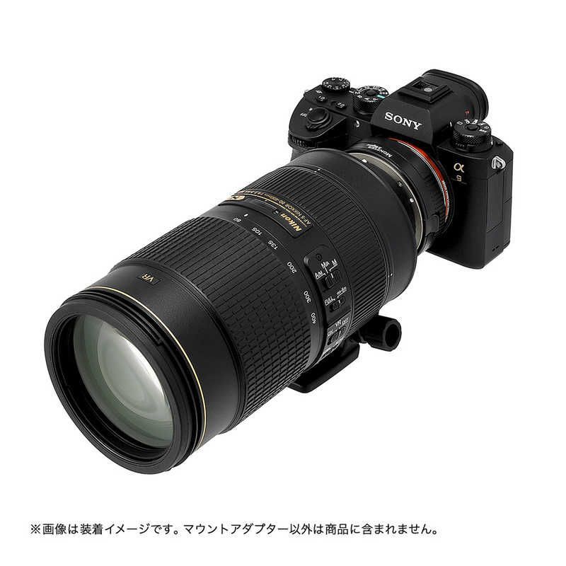 ●特徴・ニコンFマウントのモーター内蔵のCPUレンズで、AE/AF撮影が可能・モーター非内蔵のCPUレンズで絞りコントロールが可能・画面の広い範囲でAFを使用可能・10コマ/秒の高速連写時のAF-Cに対応(対象機種:α9 II、α9、α7R IV、α6600)・「顔検出」「瞳AF」に対応・レンズ内の手ブレ補正機構(ニコン「VR」、シグマ「OS」、タムロン「VC」)に対応・ボディ内の手ブレ補正機構に対応・撮影した画像の焦点距離、露出などの情報はExifデータとして記録・着脱可能な三脚座付き・PC端末とのUSB接続で、ファームウェアのアップデート可能(Windowsのみ)●仕様・対応レンズマウント:ニコンFマウント・対応機種:ソニーα1、α9 II、α9、α7R IV、α7S III、α7R III、α7 III、α7C、α7R II、α7 II、α6600、α6500 、α6400、α6300、α6100 など、高性能な像面位相差AFシステム搭載のEマウントカメラ※上記以外の機種はAF撮影が非対応ですが、「MFでのAE撮影」や「レンズ・ボディ内の手ブレ補正機能」は使用可能です。