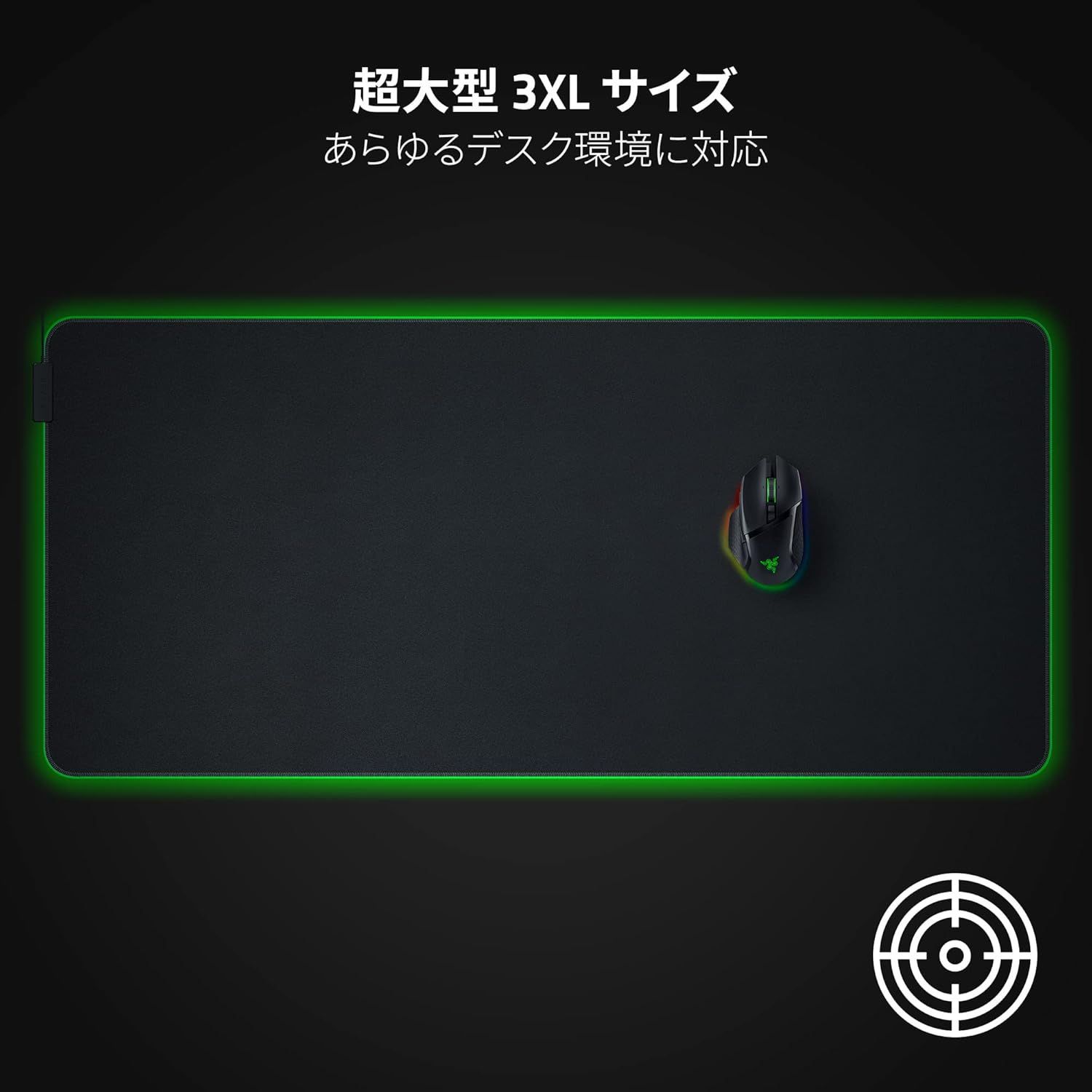 【超大型 3XL サイズ】 デスク全体をカバーする3XLサイズは、低DPIを使用するユーザーや大型マウスパッドでマウスの可動域を気にすることなく、自由自在に操作したいユーザーに最適です。セットアップ環境で RGB ライティングにより存在感を放ちます。