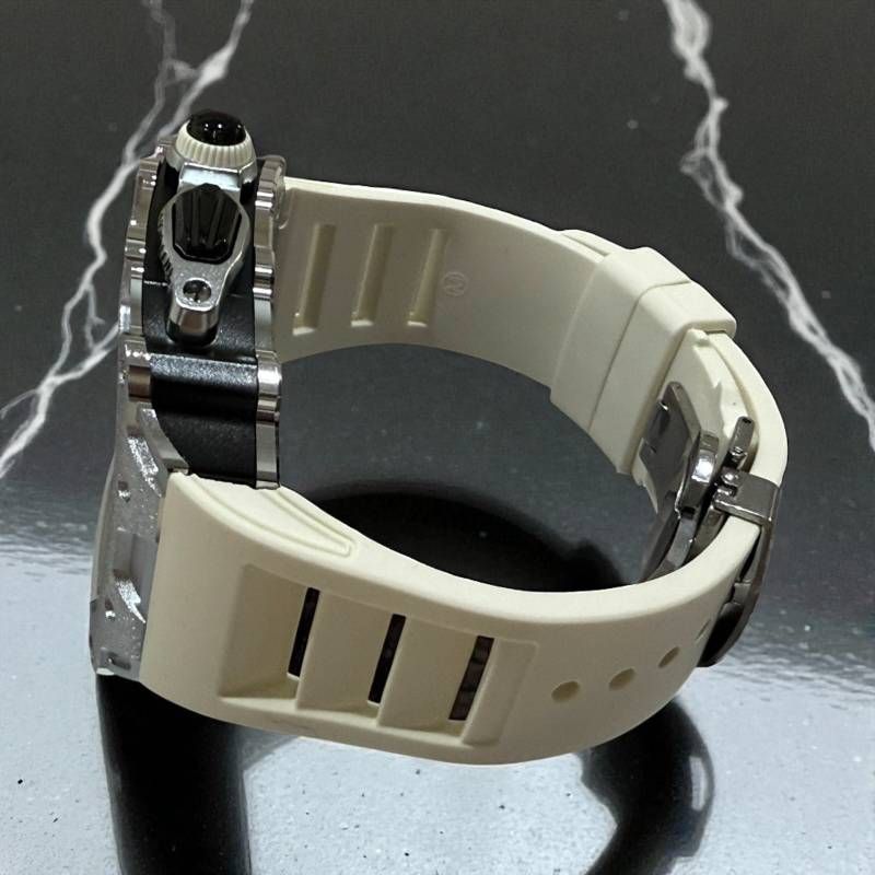 アップルウォッチケース フォージドステンレス ラバー 互換性対応 カスタム カバー 保護 ギフト 46mm ベルト バンド セット series 10 11 メンズ レディース 贈り物 サンドホワイトベルト ブラックケー