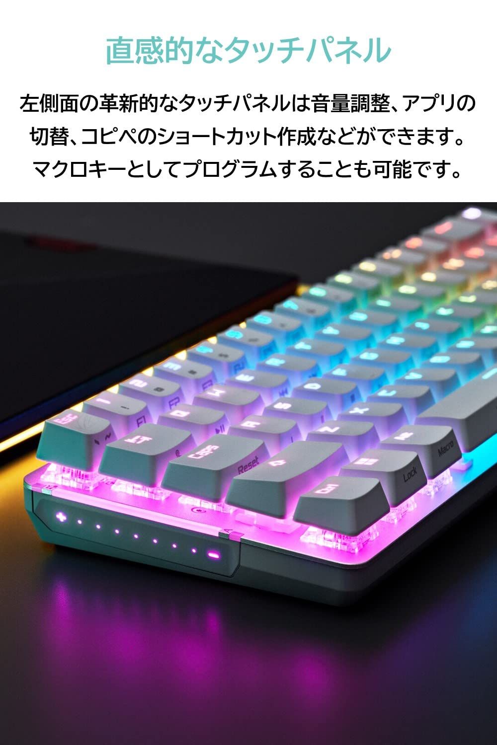 マクロ キー : プログラム可能なオンザフライ録音のサポート (「Fn」を除く)