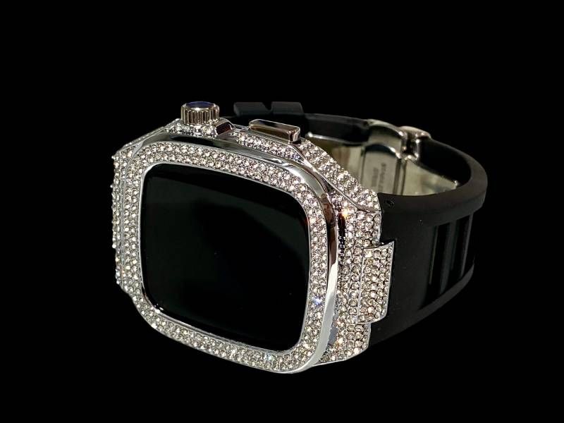 アップルウォッチケース 互換性対応 カスタム カバー 保護 ギフト 44 42 45 46 キラキラ ベルト Apple Watch バンド セット series 4 5 6 7 8 9 10 11 ブラックシルバー
