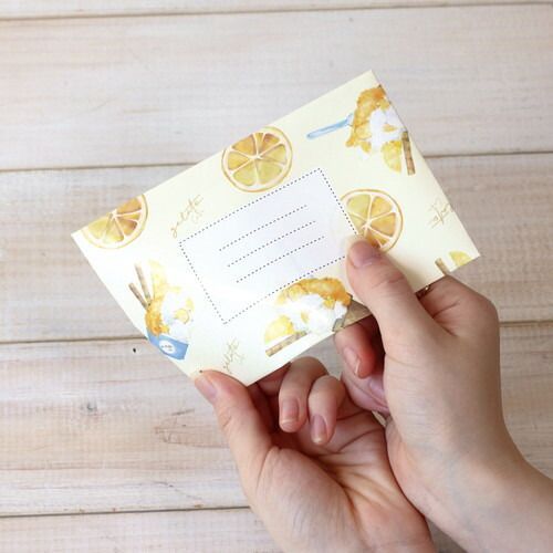 夏らしいジェラート柄が、ハッピーな気分になりそうなレターセット。封筒と帯がジェラートを包む紙をイメージしたツヤのある包装紙を使用しています。