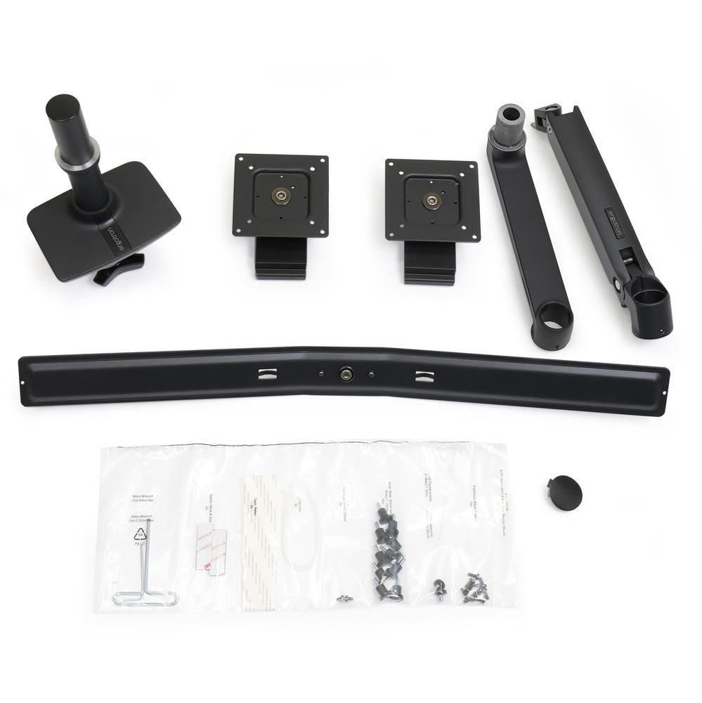 梱包内容:LXアーム、エクステンション、デスククランプ、デュアルボウ、モニターピボット2個、7インチポール、モニター取り付け用金具類