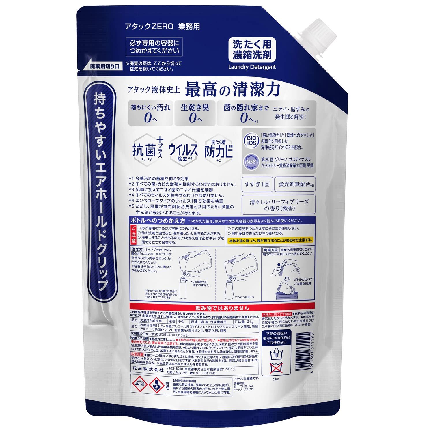 花王プロフェッショナル アタックZERO 業務用 つめかえ用 2 kg セット 2キログラム x 6