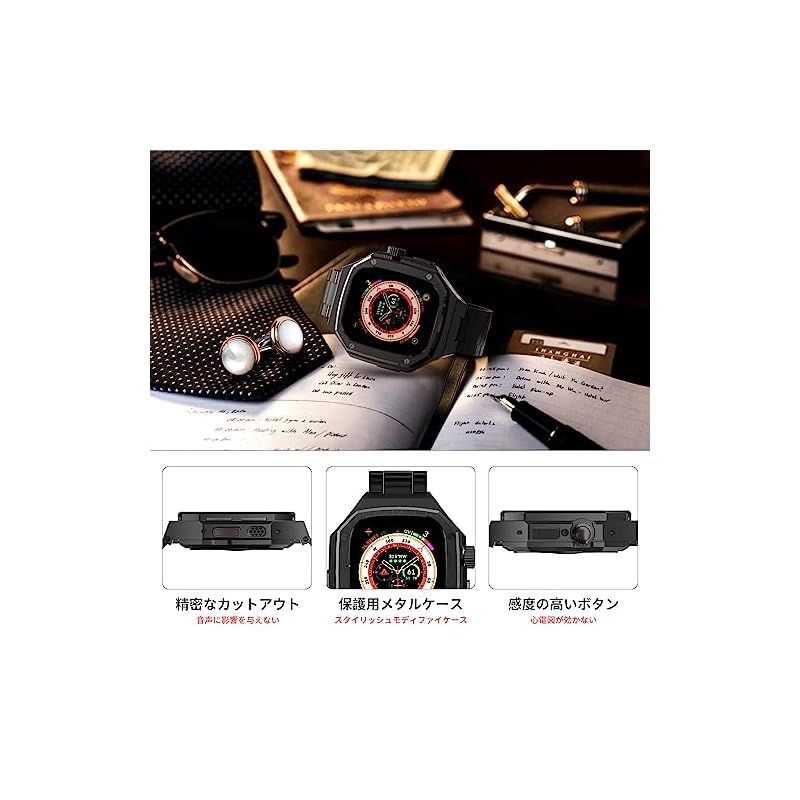 アップルウォッチバンド メタル ケース 49 mm Apple Watch バンド 頑丈なステンレスベルト iWatch Series Ultra 3 2 1 MMに対応 保護 バンパーカバー 耐衝撃 おしゃれ 装着簡単 長さ調節器具付き ビジ