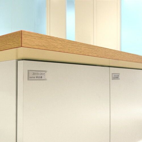 裏面に粘着剤付き。ファイル・棚・書庫などに。横から出し入れ。粘着剤が残らないので、別の場所に貼り替えて使用できます。