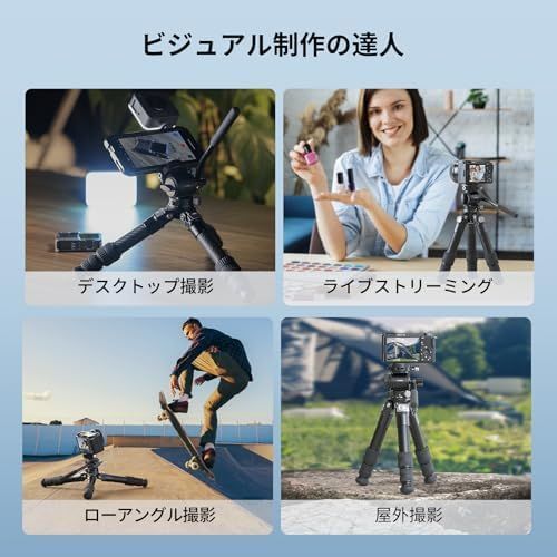 ※高い耐荷重と安定性※SmallRigのカーボンファイバーデスクトップ三脚は、25.5mm の厚みのあるカーボンチューブを使用し、精密な加工技術により、最大10kgの耐荷重を実現。ビデオヘッドの最大耐荷重は3kgで、カメラやレンズなどのプロ用撮影機器にも対応し、撮影中の安定性を確保します。