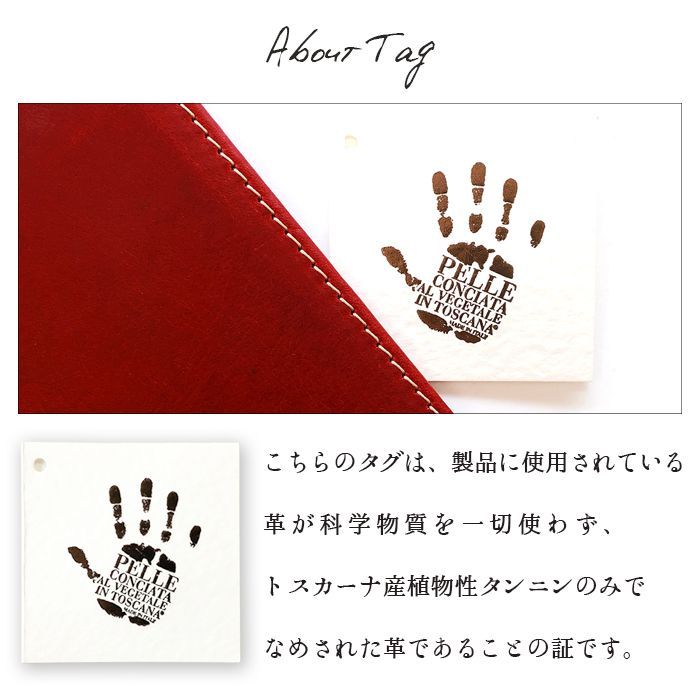 化学物質を一切使わずトスカーナ産植物性タンニンのみで、なめされたイタリア製本革生地を使用しています。