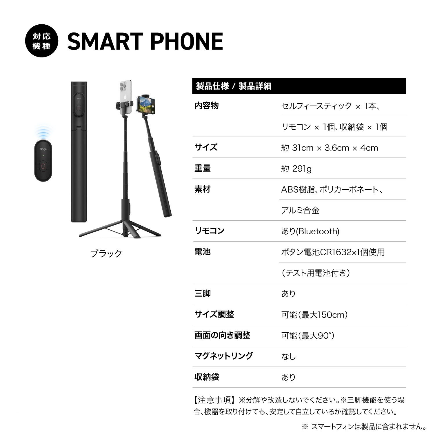 自撮り棒 iPhone アンドロイド スマホ 用 三脚 リモコン 付き 長さ 角度 調整 じどり棒 軽量 ミニ 各種 スマートフォン 対応 elago SELFIE STICK TRIPOD PRO