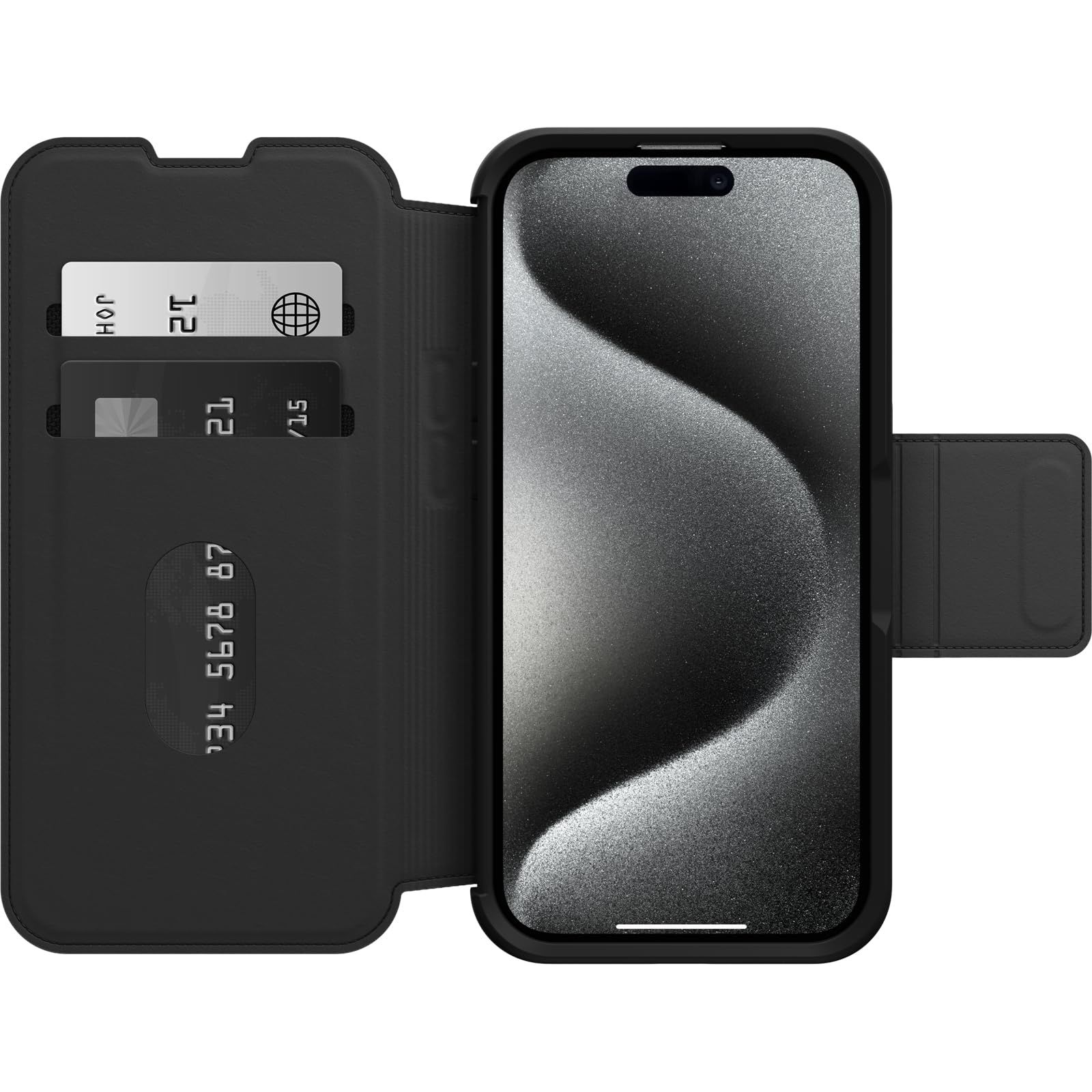 OtterBox iPhone 15 Pro ストラーダ フォリオ シリーズ ケース - SHADOW ブラック カードホルダー MagSafeにスナップ式 本革 ポケット 手帳型