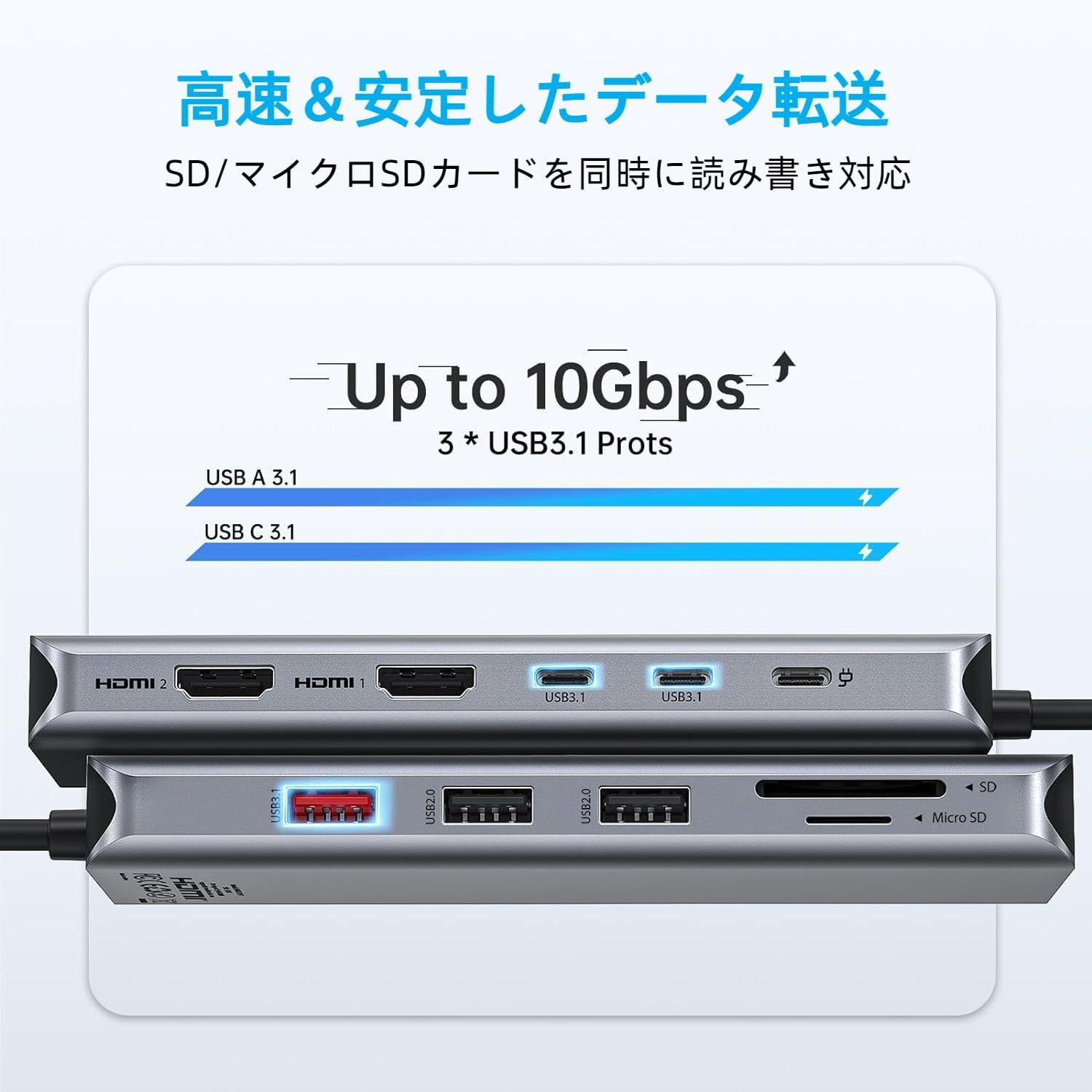 - 1000 MbpsRJ 45 6*USBポート 100 W電力出力 アルミ製良好な放熱性 ハブ c 3.5 mmオーディオジャック-SD|TFカード読み取りMacBook 1 usb in Pro|Air ドッキングステーション3画面出力 2*H