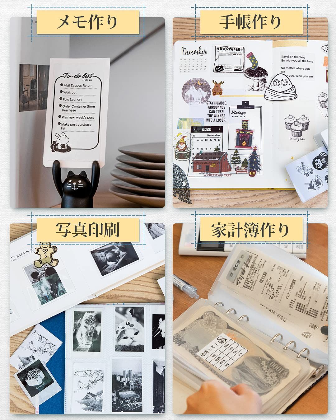 メモプリンター モノクロプリンター フォトプリンター Bluetooth接続 モバイルプリンター 手帳 ポケットプリンター 写真 ハガキ リスト 領収書 付箋 ワード ウェブラベル メモ ラベル 勉強ノート 整理収納 宛名用 ポータブル型 学生 みにぷらん 友
