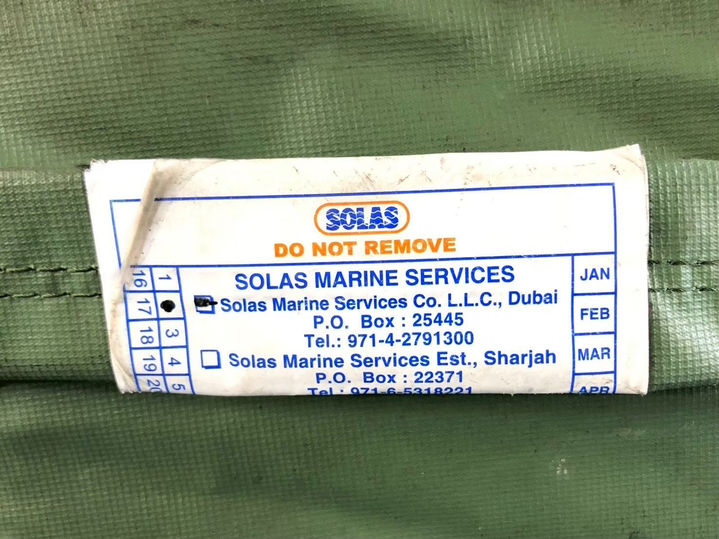 ☆ 肩の後ろには、海面に浮いた時に頭を起こして置けるようにインフレータブルヘッドサポートピローが設置されています。チューブから息を吹き込んで浮力を大きくする事ができます。ピローには 2009年に就役した米海軍の補給艦 『USNS KALLY SCHIRRA』で使用されていたことを示すステンシルが入っています。