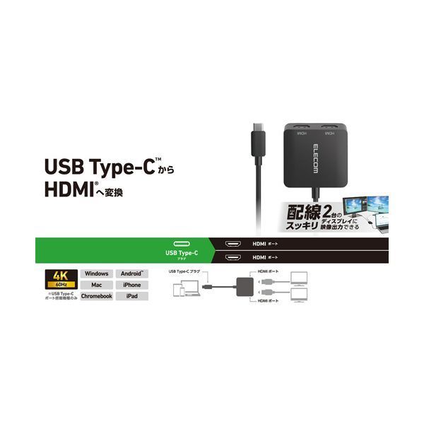 エレコム USBType-C - HDMI変換アダプター 2ポート ブラック AD-