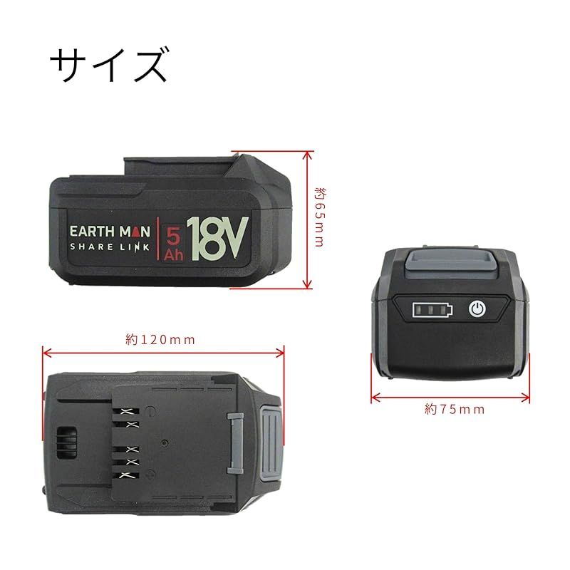 商品名:儀(Takagi) EARTH MAN SHARE LINK 18V 専用 バッテリーパック 5.0Ah SL-185BP-A【燕三条ブランド】【充電時間140分】【残量3段階ランプ点灯】【全機種使える共通バッテリーラインナップ】