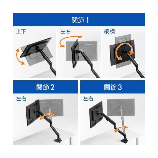 ●17〜32インチサイズのモニターに対応するガススプリング式のシングルモニターアームです。