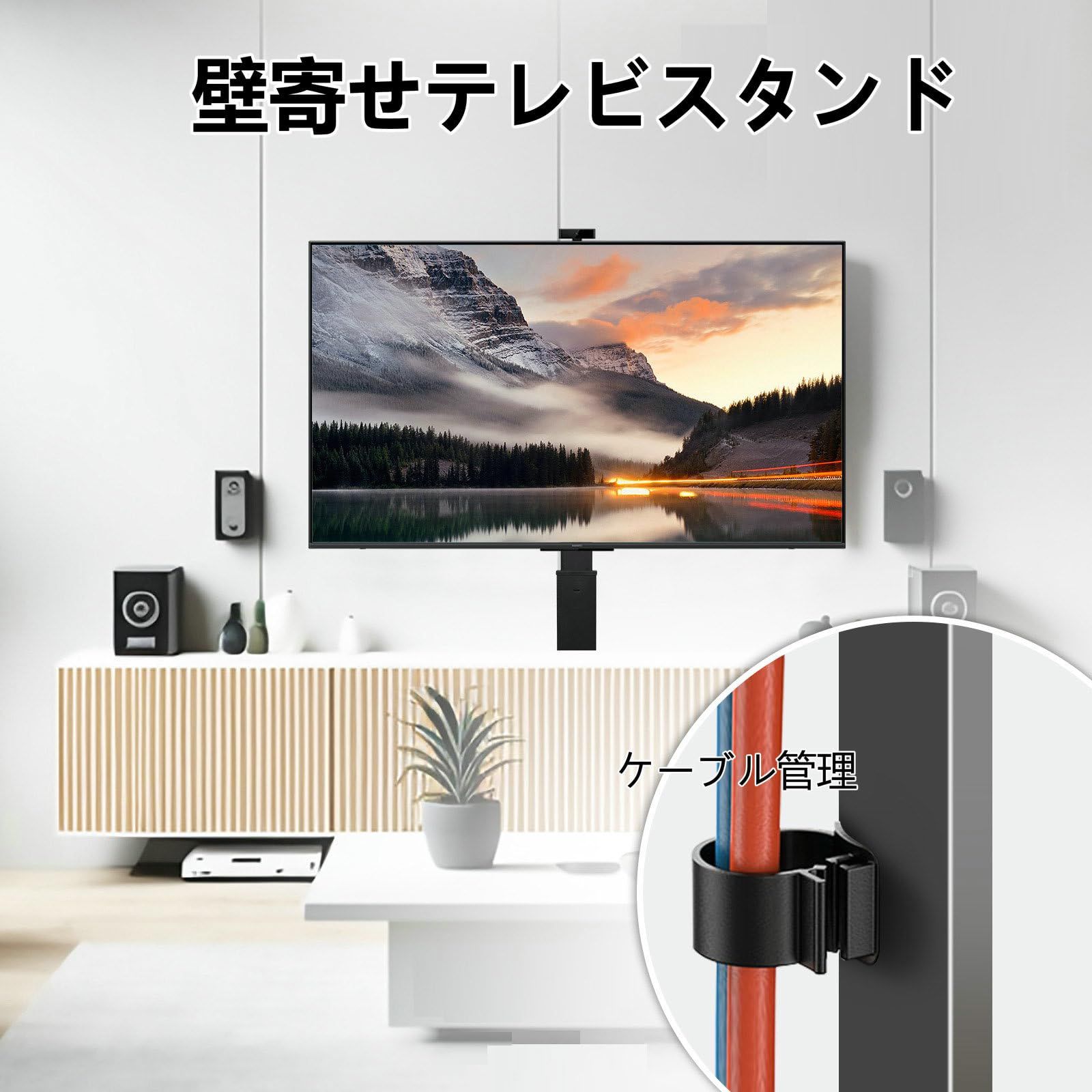 壁寄せテレビスタンドキャスター付き ハイタイプ 42 75インチ対応 手回し昇降式 縦 横スクリーン90度回転 無段階高さ調節 自立型 移動式 TVスタンド ハンドル付き 超省スペース 耐荷重50 kg VESAは100 100から600 500 m