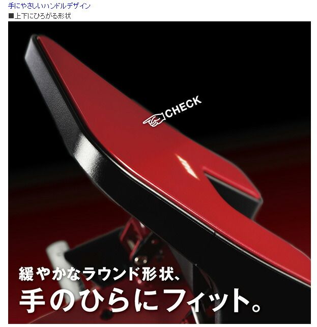 ○軽い力でもサクッと楽あけ。力を入れやすいラウンド形状のハンドルが、今までにないフィット感を実現。紙の中央がひと目でわかる、収納式のゲージ付き。