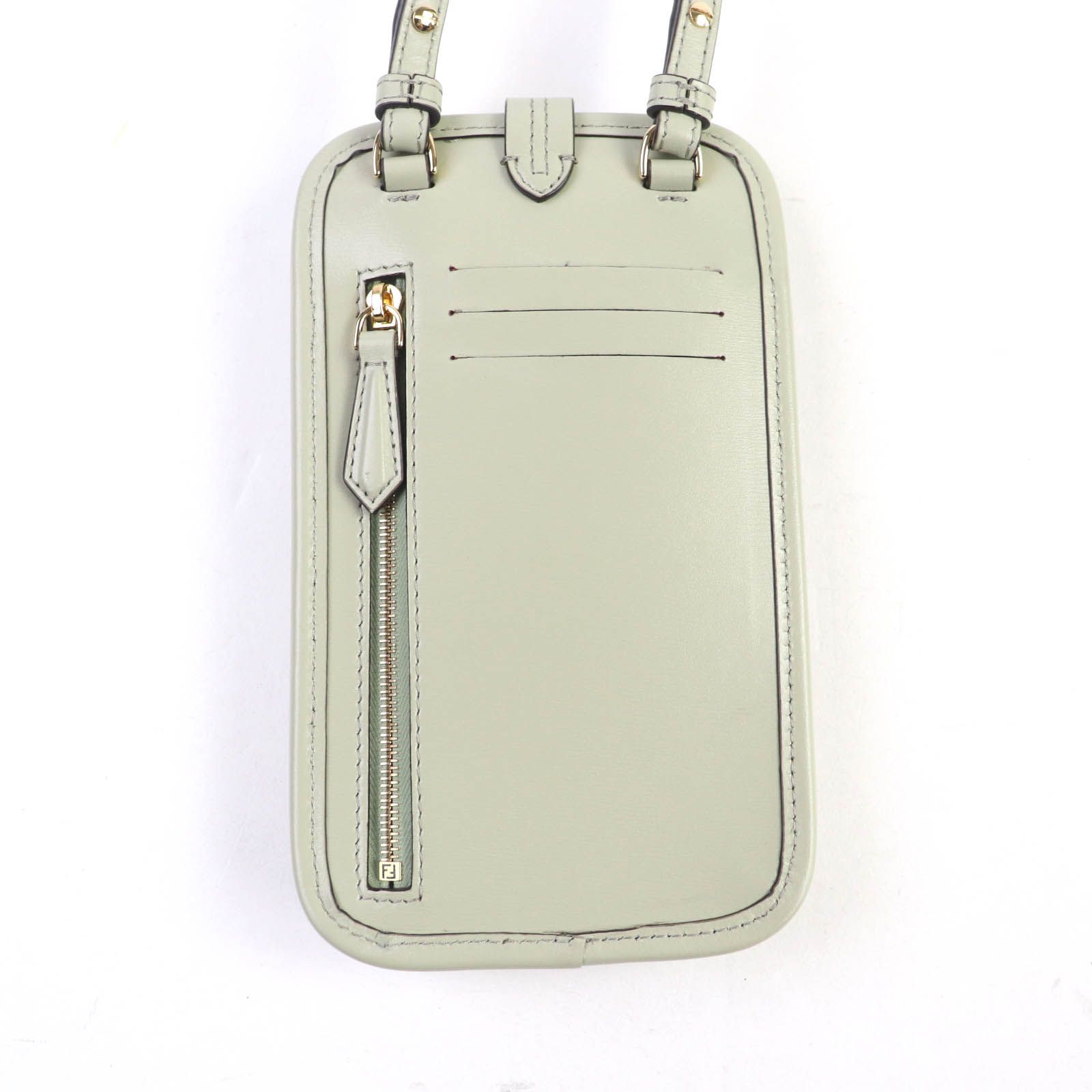 FENDI フェンディ 7 AS 131 セージグリーン ショルダーストラップ付 オーロック レザー フォンポーチ ウォレット 携帯ケース ゴールド シルバー金具 箱 保存袋付き イタリア製 レディース