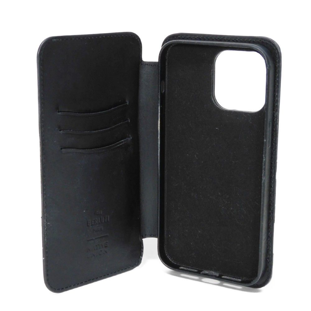 Berluti ベルルッティ スクリットレザー iPhone 14 Pro Max フォリオ ヴェネチア カーフ ブルー ブラック 手帳型 iPhoneケース カリグラフィ ストーンデニム スマホケース