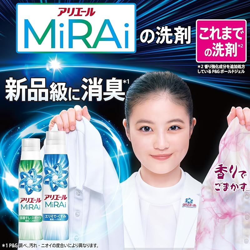 MiRAi(ミライ)の洗濯洗剤は、香りでごまかさず、新品級に消臭!*1 *1 P&G調べ。汚れ・ニオイの度合いにより異なります。