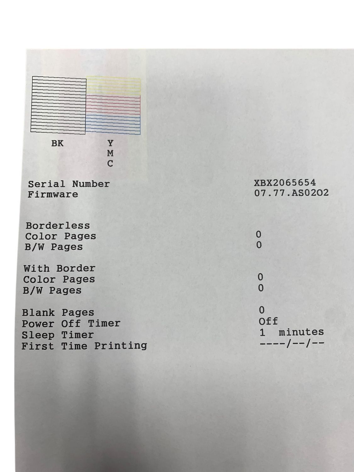 通電、インクカートリッジをセットして印刷チェックのみ行なっています。