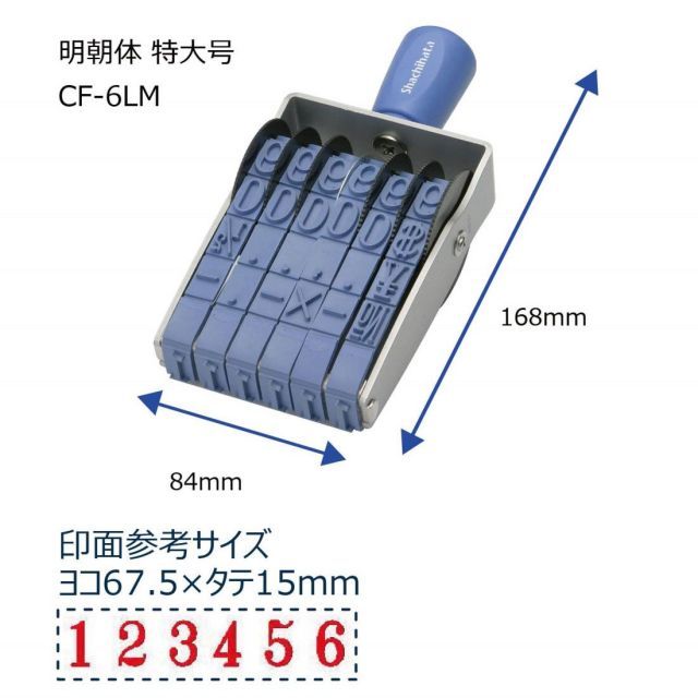スタイル:明朝体◆商品名:シャチハタスタンプ回転ゴム印欧文6連特大号捺印サイズ約67×15ミリ明朝体