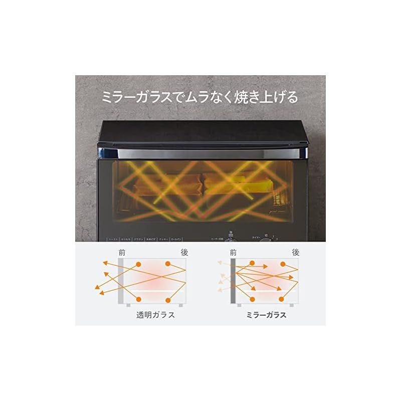 【ミラーガラスで 外サクッ、中ふんわり。】熱を反射するミラーガラスを使用することで、ムラなく熱を行き届けることが可能に。 パンの水分が逃げるのを防ぎ、スピーディーにすばやく焼き上げます。