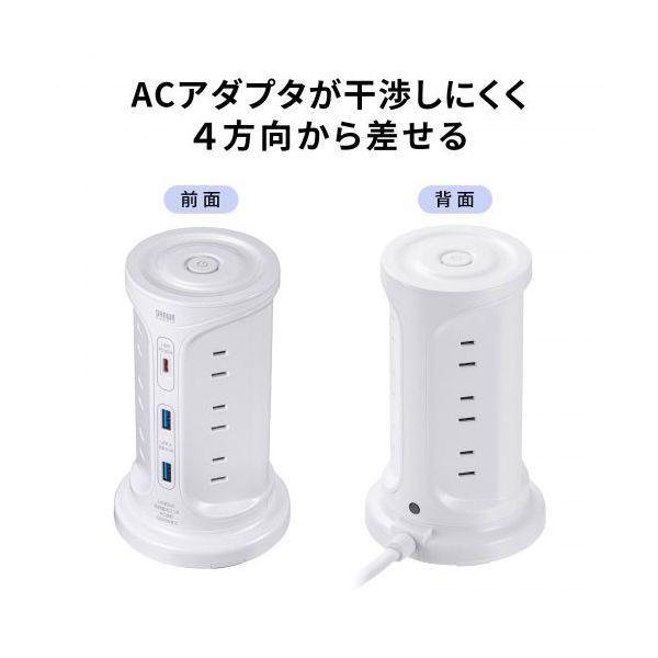 サンワサプライ USB充電機能付きタワー型タップ ホワイト TAP-