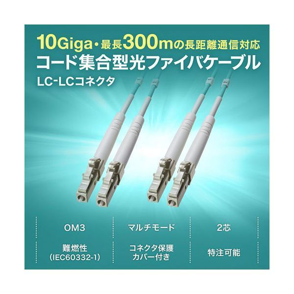 ●10GBASE-SR/SW規格伝送に対応する10ギガビット高速通信が可能なOM3仕様準拠の光ファイバーケーブルです。