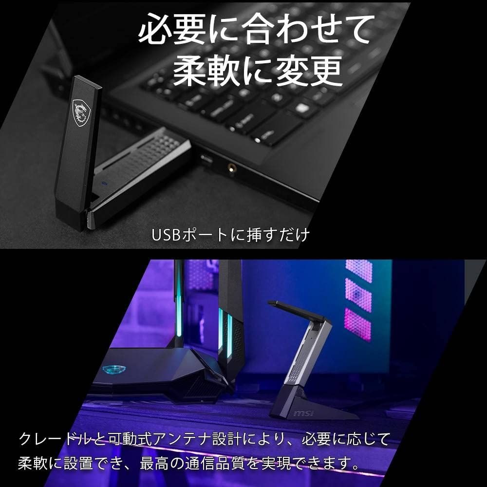 MSI AX 1800 WiFi USB アダプター 無線LAN 子機 GUAX 18 デュアルバンド1201 Mbps 5 GHz 574 2.4 外部アンテナ 3.2 G デュアルバンドWifi