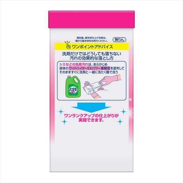 酸素系漂白剤配合で業務用のハードな汚れもしっかり落とします。除菌・消臭効果を発揮(すべての菌を除菌するわけではありません)。しみ込んだイヤなニオイもスッキリ。<粉末>[無蛍光]