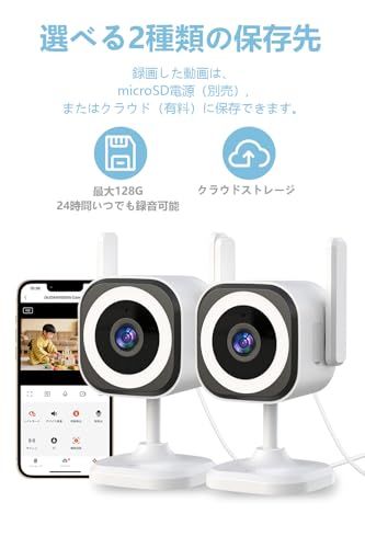 【双方向通話&スマホ通知&24時間録画】 マイクとスピーカー内蔵で、スマホアプリから離れた場所でも家族やペットと双方向通話が可能。異常音(泣き声、物音)や動体を検知すると、即時にスマホにプッシュ通知が届きます。録画データはmicroSDカード(128GB対応)またはクラウド保存を選択可能。365日24時間録画で、大切な瞬間も見逃しません。