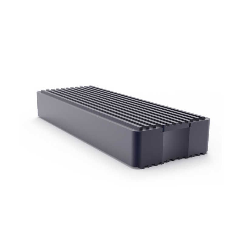 NVMe M.2 2280 SSDをヒートシンク形状のアルミ製本体とすき間無く設置するシリコン製熱伝導シートが熱を効率良く逃がします。