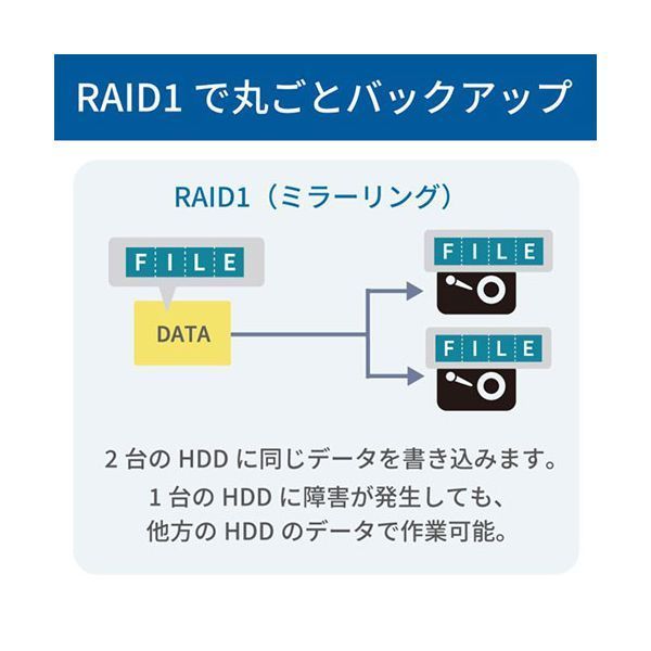 ※HDD障害発生時、他方のHDDだけでの使用やデータの復旧はできません。