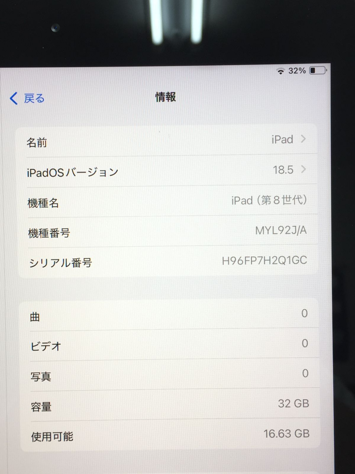 Apple iPad 第8世代 Wi-Fiモデル 32 GB A 2270 MYL 92 J|A スペースグレイ 動作品