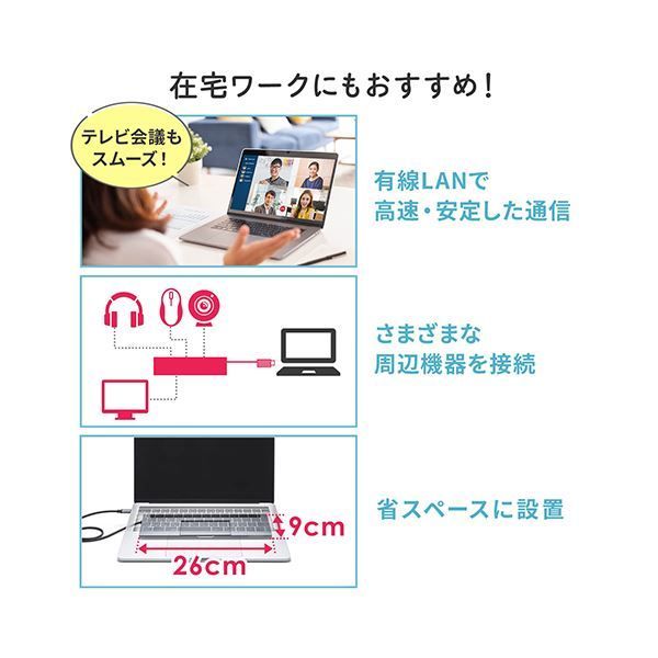 ●GigabitEthernet(1000BASE-T)に対応していますので、Gigabitネットワーク環境にも対応でき、USBType-Cケーブル1本で有線LAN接続をすることができます。