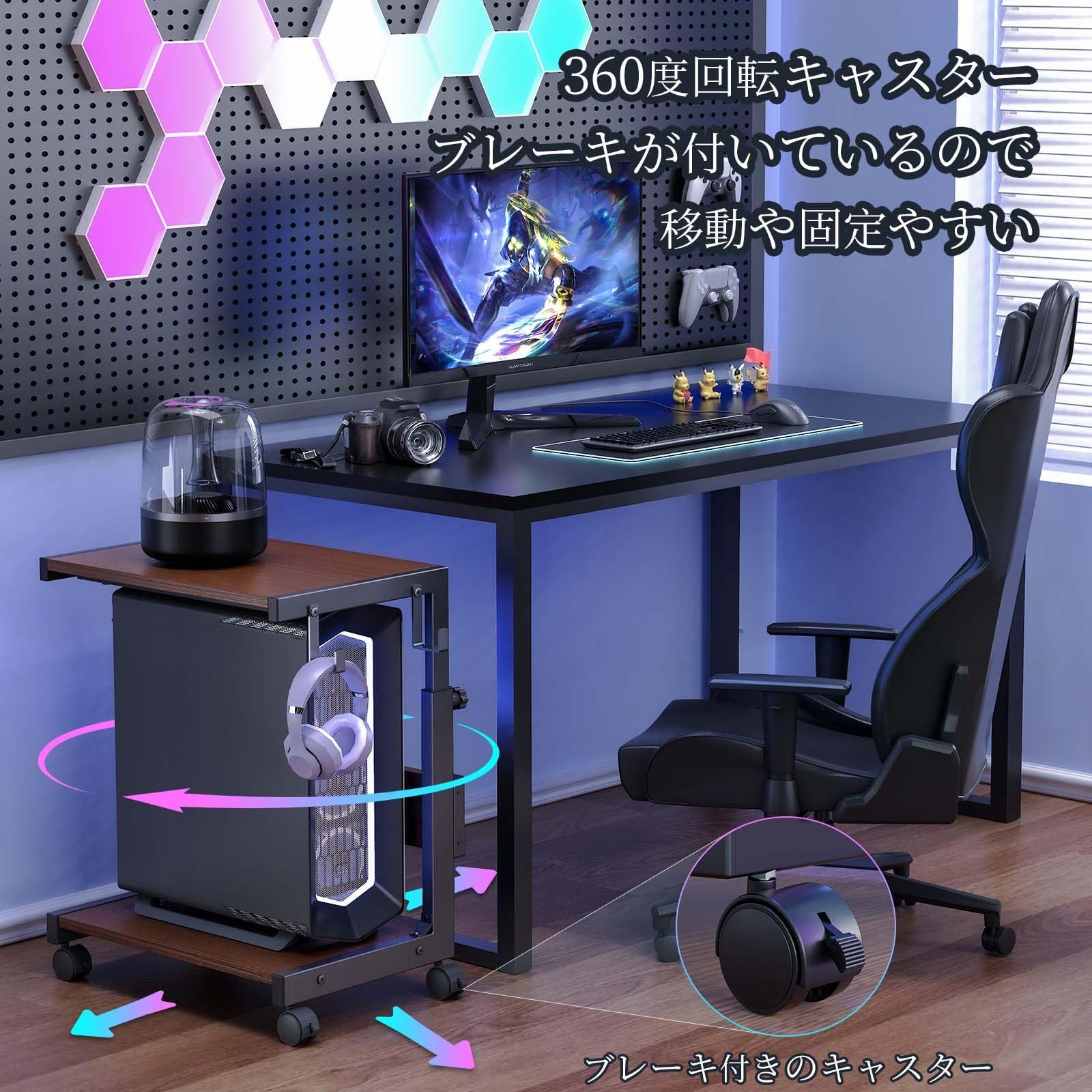 CPUスタンド PCラック パソコンラック 高さ調節 コの字型サイドテーブル キャスター付き 昇降式テーブル pcワゴン 収納テーブル CPUワゴン 2段木製の棚板 木目調 ソファー サイド オフィス用 ベッドルーム用 ゲーム用 組立品